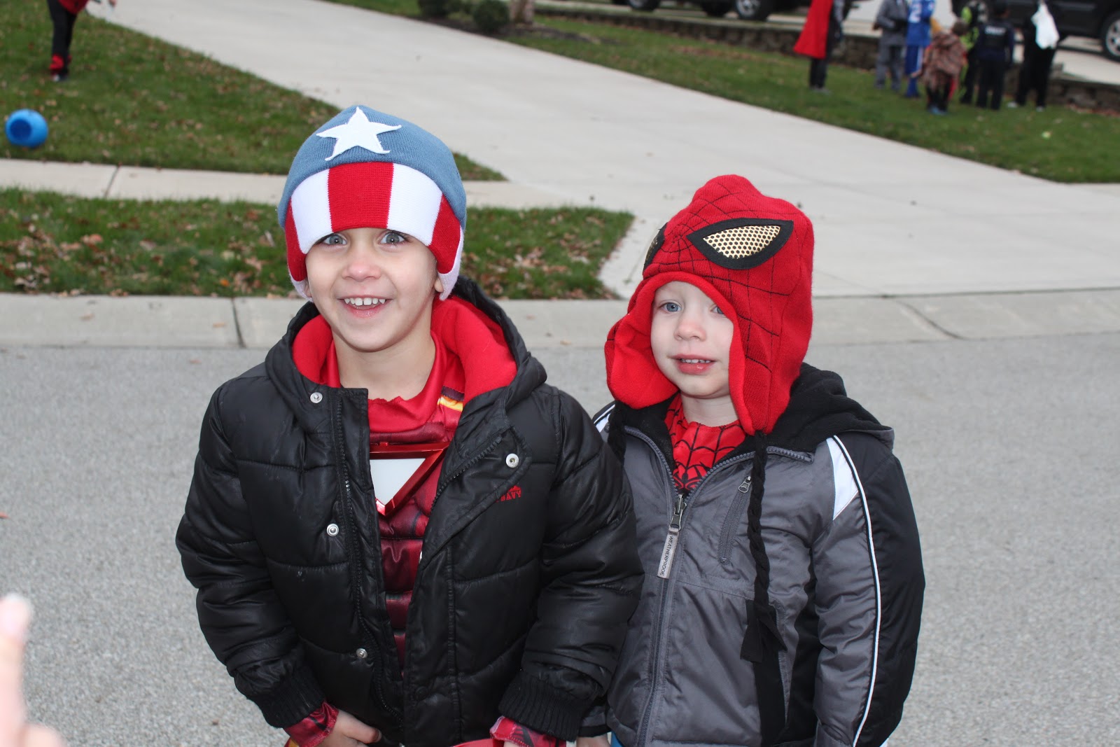 We headed to the annual neighborhood party, ate some food, talked with neighbors and then did the trick-or-treating thing for about an hour before he headed in to thaw out.